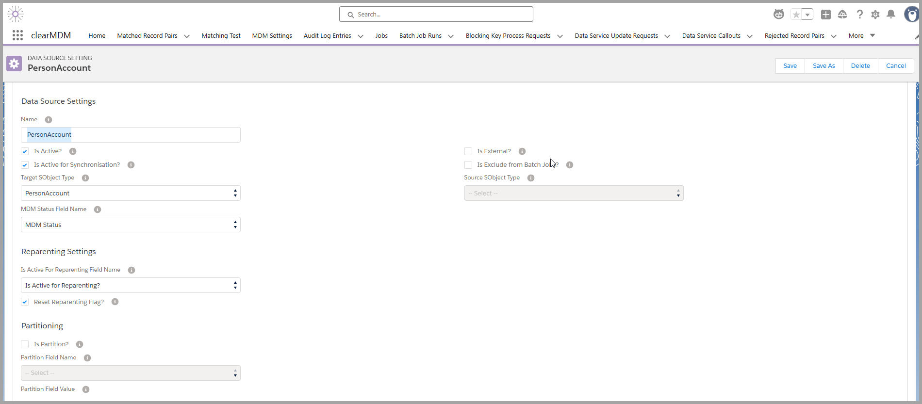 clearMDM Data Source Partitioning Settings